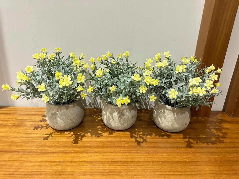 3'lü Ev ve Ofis İç Mekan Dekorasyonu için 3'lü Saksıda Sarı Çiçekli Yapay Bitki