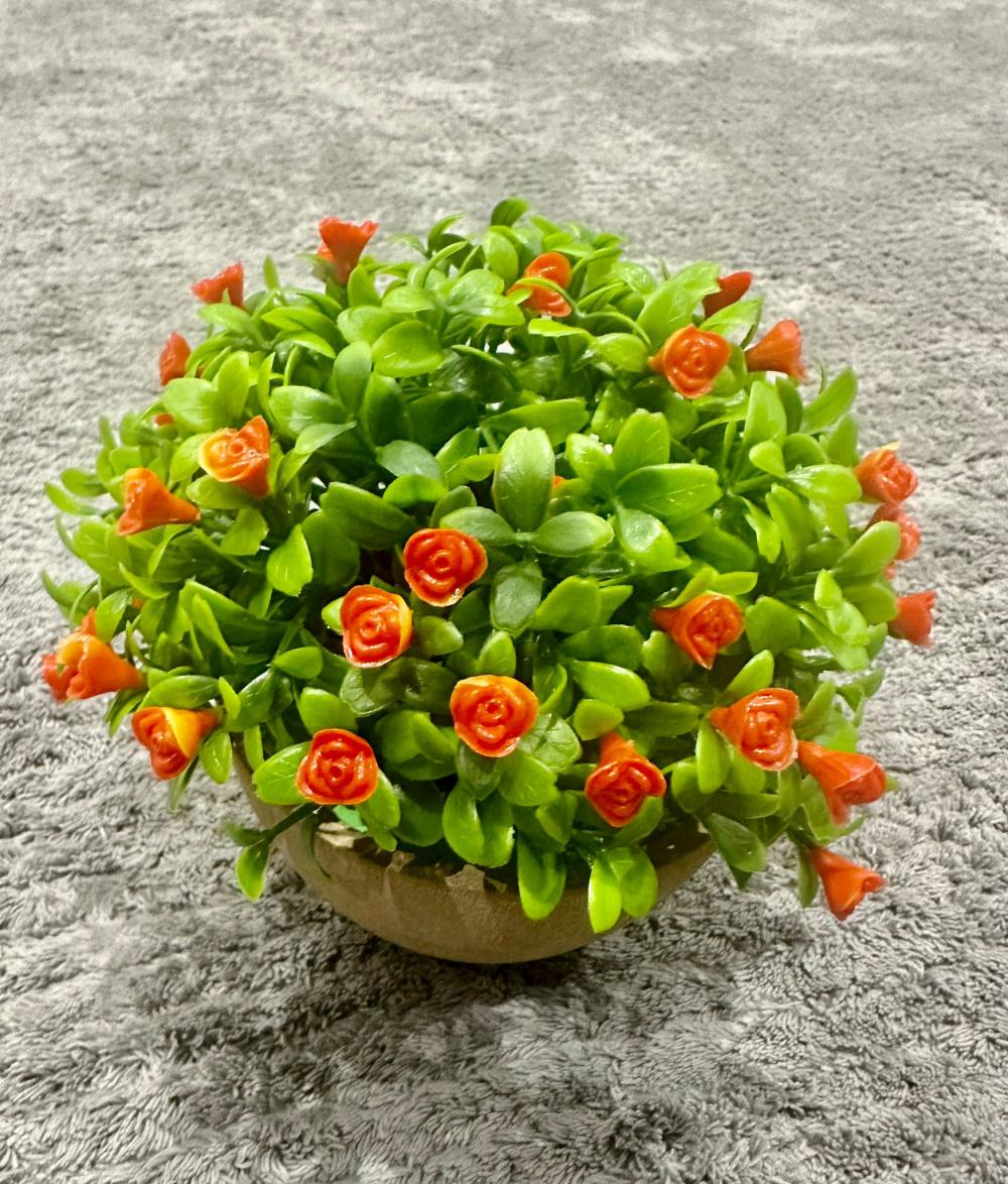 Dekoratif Saksılı Yapay Çiçek - Turuncu Minyatür Güller - Canlı Görünümlü Masaüstü Bitki