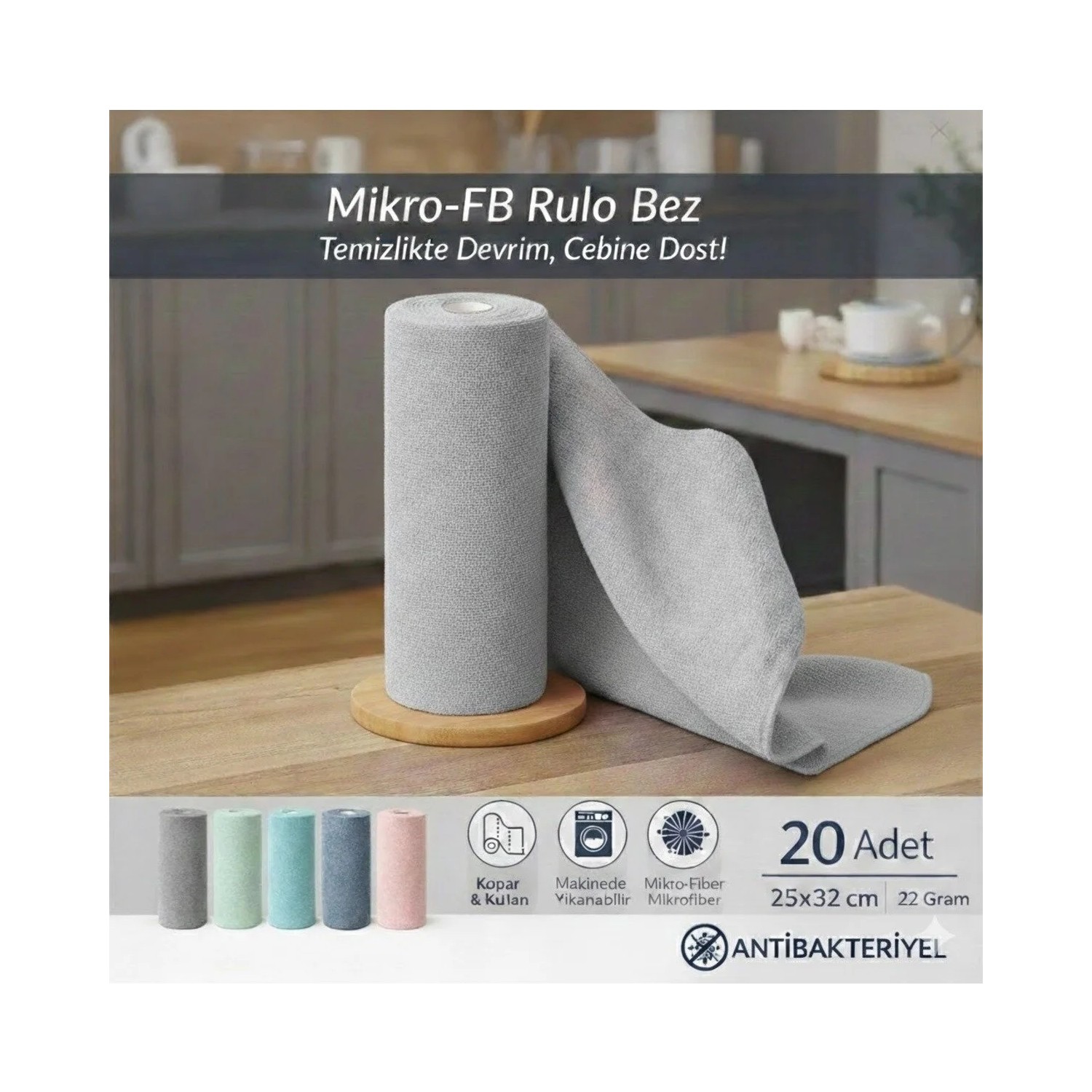FB Çok Amaçlı %100 Mikrofiber Rulo Temizlik Bezi – Antrasit Gri Şıklığı ve Hijyen Bir Arada!