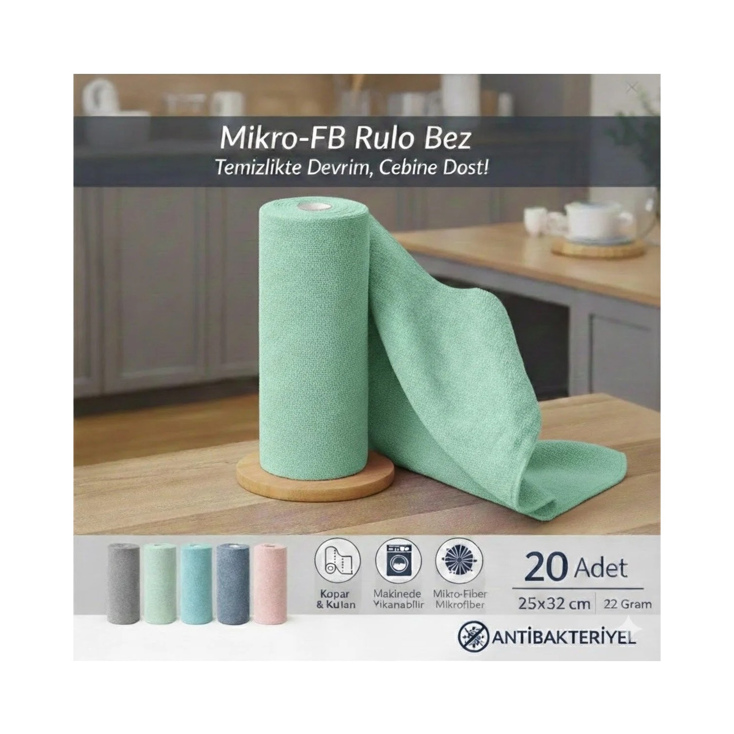 Temizlik alışkanlıklarınızı değiştirecek FB Cup Mikrofiber Rulo, iç açıcı Su Yeşili (Mint) rengiyle mutfak ve banyolarınıza taze bir hava katar. Havlu kağıt kullanım kolaylığını, mikrofiber teknolojisinin derinlemesine temizleme gücüyle birleştiren bu ürünle her yüzeyde kusursuz sonuç alın.