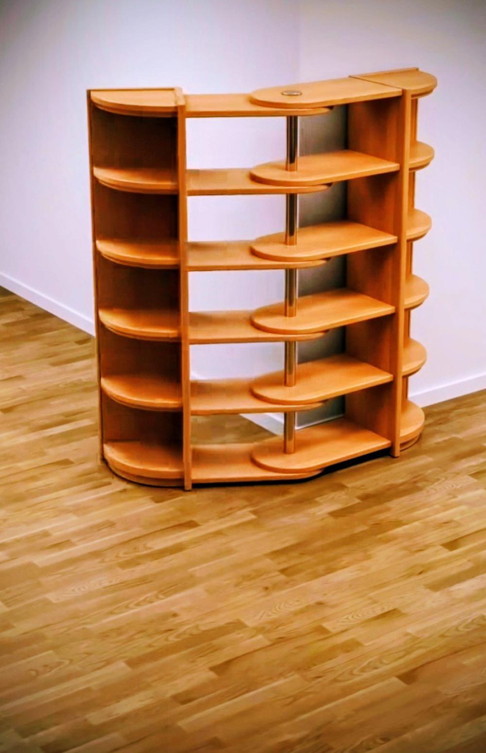 Hem şıklığı hem de işlevselliği bir arada sunan bu özel tasarım raf sistemi, yaşam alanlarınıza düzen ve estetik katmak için tasarlandı. Orta kısımdan sağa doğru hareket edebilen dönebilen rafları sayesinde ihtiyacınıza göre alanınızı şekillendirebilir, her köşeyi en verimli şekilde kullanabilirsiniz.
