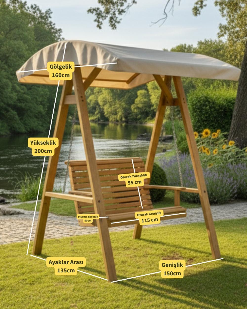 2 Kişilik Gölgelikli Ahşap Salıncak – Doğal Konfor ve Şıklık