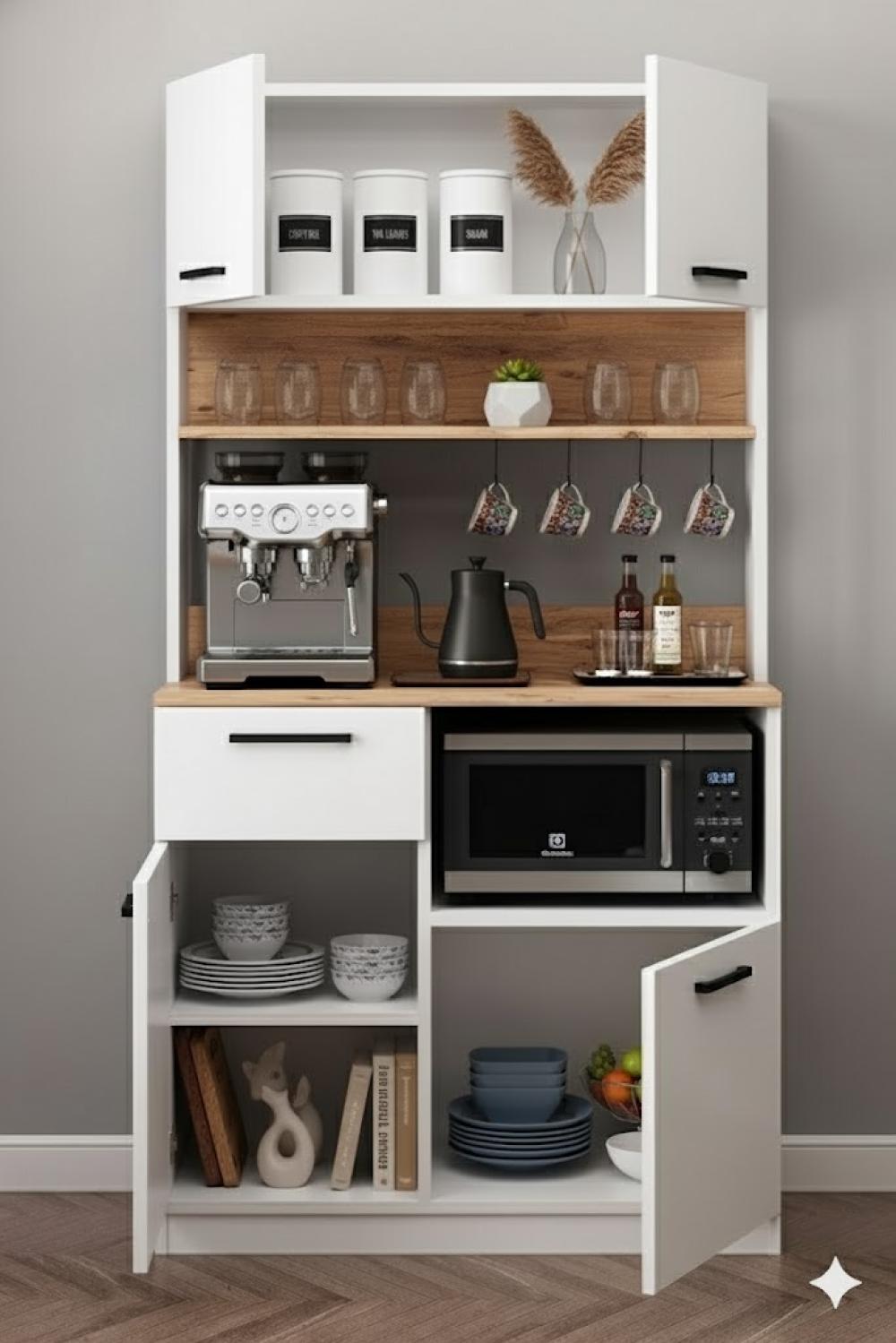 Fonksiyonel Çözümler: "Kahve makinem tam buraya sığmalı," "Kapsüllerim için gizli bir çekmece olmalı," veya "En sevdiğim 6 fincanım için askılık istiyorum." İhtiyaçlarınız ne ise, tasarımınızı o ihtiyaçlara göre şekillendiriyoruz.