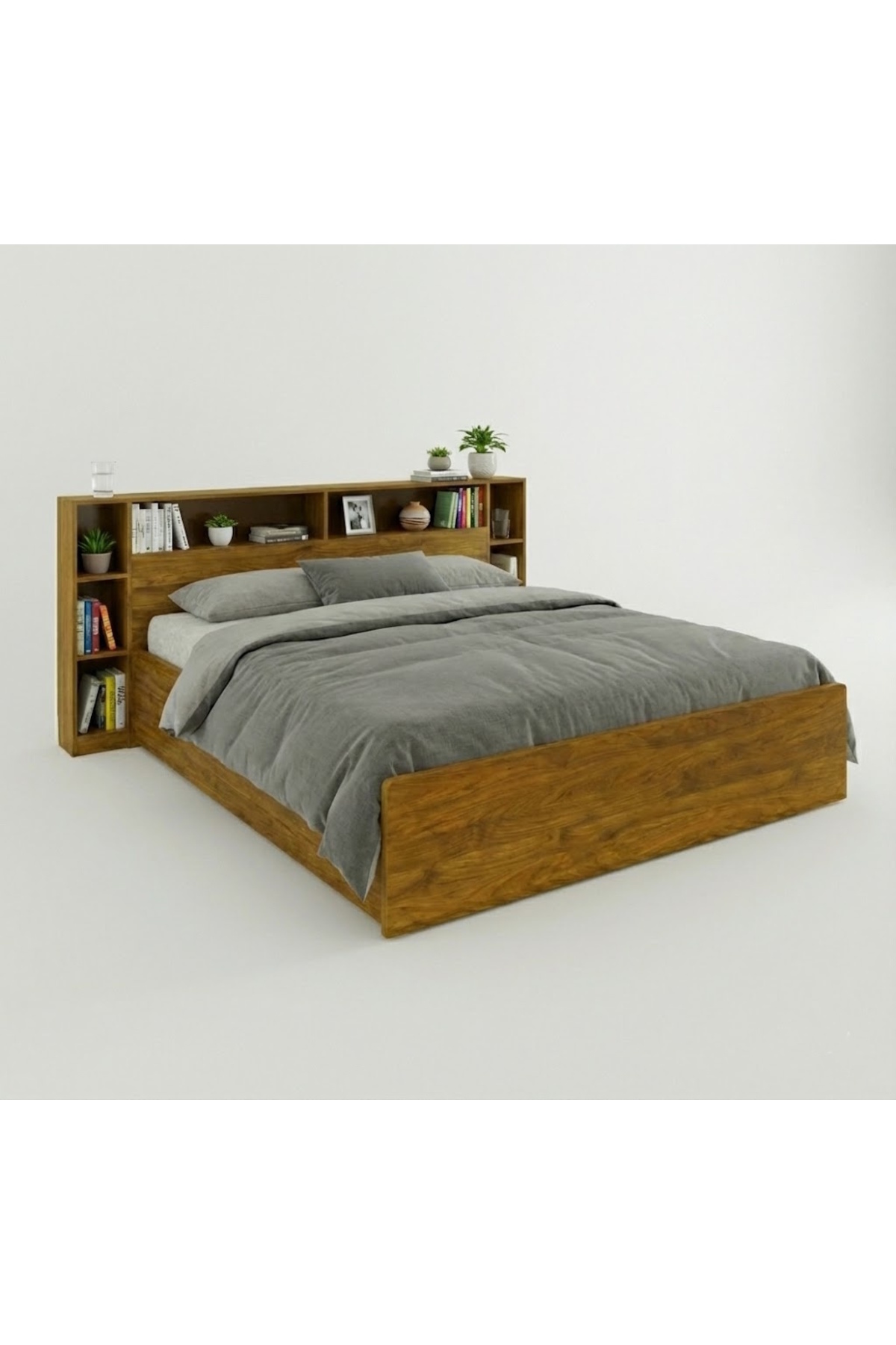 ✅ İdeal Ölçüler: Toplam 200 cm genişliğindeki başlığıyla heybetli bir duruş sergilerken, standart 150x200 cm çift kişilik yataklarınızla tam uyum sağlar. Teknik Özellikler ve Ölçüler: Kurulum Sonrası Toplam Genişlik: 200 cm (Odanızda ayrılacak yer) Yatak Uyumluluğu: 150 x 200 cm yataklar içindir. Başlık Yüksekliği: 90 cm Karyola Yüksekliği: 55 cm Raf Derinliği: 25 cm (Geniş kullanım alanı) Malzeme: 1. Sınıf MDF (Doğal Ceviz Görünüm) Renk: Doğal Ceviz