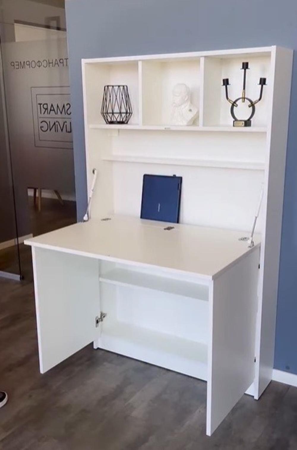 Çift Fonksiyonlu Tasarım: Kullanılmadığı zamanlarda zarif ve düzenli bir duvar ünitesi/kitaplık (Genişlik: 80 cm, Yükseklik: 170 cm), çalışma zamanınız geldiğinde ise saniyeler içinde tam teşekküllü bir çalışma masasına dönüşür.